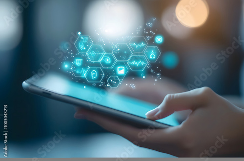 Doctors Using Digital Tablets with Virtual Medical Icons for Healthcare Technology