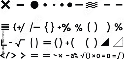 mathematic, symbol, icon, mathematic, equation, algebra, geometry, plus, minus, multiply, division, equal, bracket, square, root, percent, asterisk, dot, dash, less, greater, programming, code, design, education, engineering, science, development, illustration, design element, web design, graphic design, digital artwork