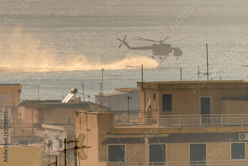 Fire helicopter gathering water at Loutraki in Greece for the big fire.
