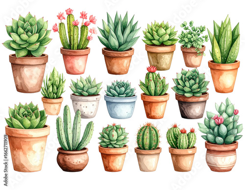 Firefly_Hand-drawn succulents in pots isolated on transparent background