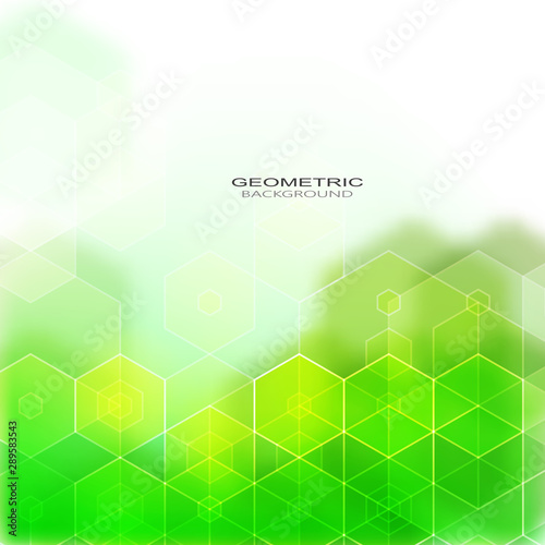 Geometric background with green hexagons with shadow. Design element. Brochure Template