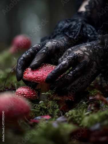 nature, forest, plant, mushroom, fungal, toadstool, red, autumn, amanita, agaric, poisonous, poison, fly agaric, fungal, toxic, white, grass, mushroom, cap, season, moss, wood, musk, hand, glove, lace