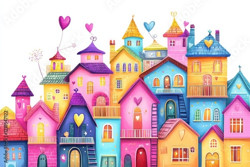 background, village, children, city, whimsical, layout, sweet, fun, happy, space, landscape, sheet, sky, page, bright, optimistic, paper, children, colourful, house, square, blank, lovely, message