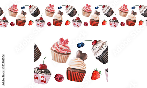 cupcake, cake, food, sweet, dessert, chocolate, isolated, birthday, cupcake, white, muffin, red, cup, pink, baked, cream, party, candy, snack, christmas, delicious, celebration, holiday, decoration, blue, illustration, sugar, gouache, cafes, bakery, art, eat, summer, style, menu
