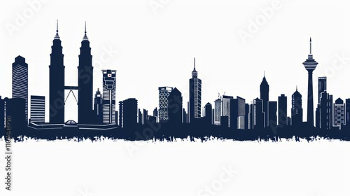 Kuala Lumpur skyline illustration with iconic Petronas Towers and KL Tower in blue silhouette on white background