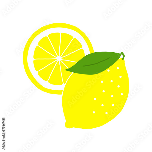 葉付きレモンの手描きイラストアイコン lemon flat illustration vector icon