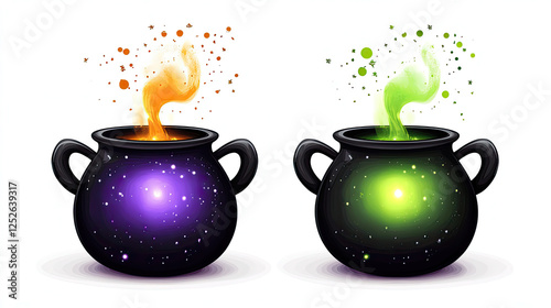 Magic Cauldrons with Colorful Vapors: Halloween Potion Effects