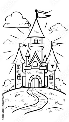 magical, princess, castle, cartoon, illustration, children, colouring, book, page, art, vignetting, ink, crayons, outline, simple, easy, fun, cute, fairy, tale, fantasy, royals, kingdom, tower, fortress, crown, dream, enchanted, palace, wonderland, storybook, hand-drawn, printable, template, bricolage, activity, creative, learning, playful, happy, adventure, charming, elegant, fairy tale, imaginative
