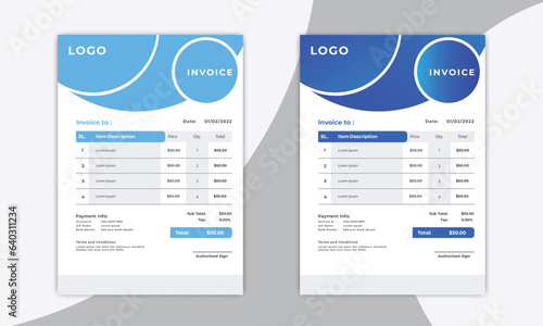 minimal blue invoice template vector design
