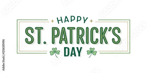 Minimalist St. Patrick's Day typography with a clean layout, shamrocks, and gold accents on a white background. Ideal for modern holiday cards and Irish-themed designs.