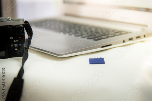 Modern Digital Camera, Laptop Computer and Display.
