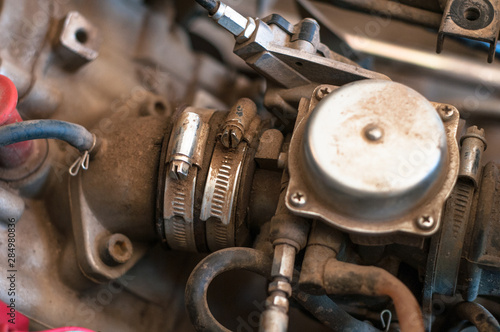 motorcycle carburetor. check the motor before the trip. under the hood.
