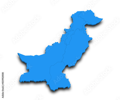 Pakistan country 3d map with color. pak, PK, Islamic republic of Pakistan