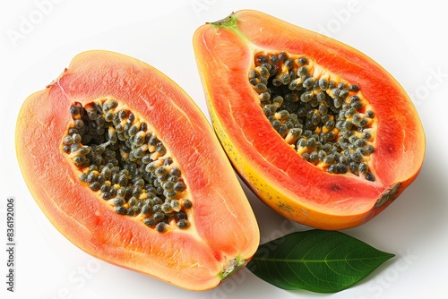 papaya, fruit, food, tropical, fresh, isolated, orange, healthy, ripe, cut, half, exotic, sweet, seed, white, papaya, juicy, seed, dessert, slice, delicious, sliced, tasty, raw, green