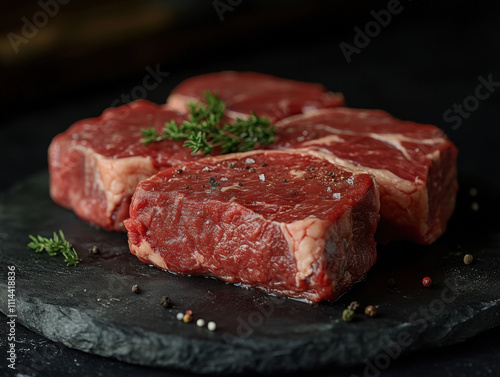 raw meat that has not been prepared yet. Emphasize the quality and freshness