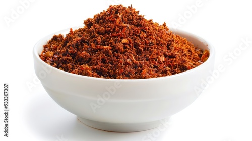 white bowl, white background, spice, vibrant, detailed, culinary, food photography, spicey, seasoning, cooking ingredient, visual, texture, powder, clean, flavorful, ingredient, culinary arts