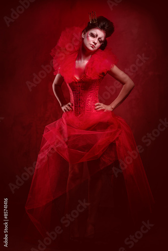 dress, collar, jabot, fancy dress, evening dress, crown, corset, fluffy, skirt, woman, make-up, make-up, creative, coiffure, coiffure, coiffure, character, fairy tale, fictional, princess, fantasy, caucasian, female, people, old-fashioned, vintage, duchess, person, gothic, studio, alone, pose, posing, beauty, fashion, glamour, model, elegant, elegance, brunette, royals, adult, lady, costume, gown, mysterious