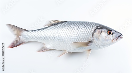 Rohu fish with a red tail fin swimming in White background, generative ai