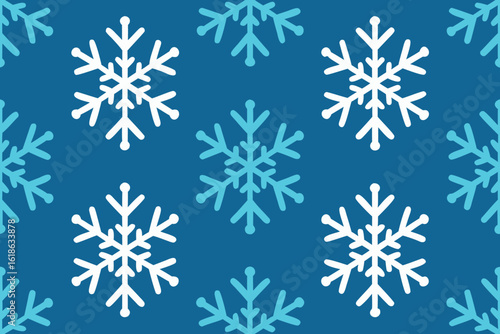 seamless pattern of white and light blue snowflakes on a dark blue background, representing winter and the holiday season vector illustration