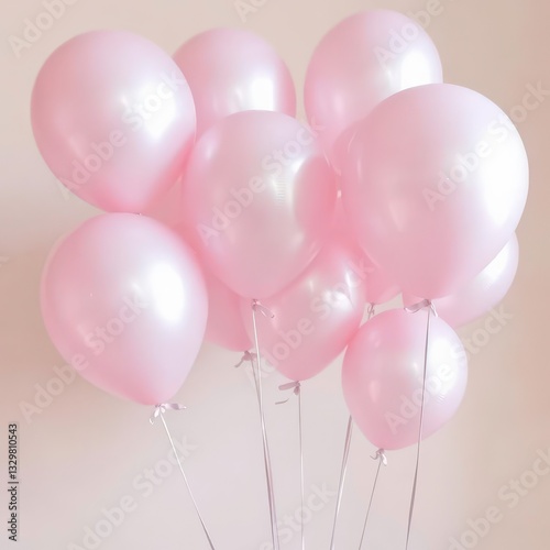Shiny Metallic Pink Balloons Floating Against a Gentle Pastel Background for a Soft and Elegant Vibe