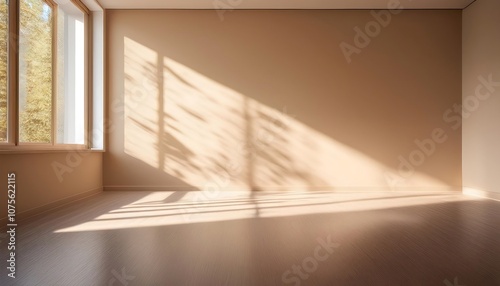 Soft light shines through a window onto a beige wall, casting long shadows and illumina_1(1673)