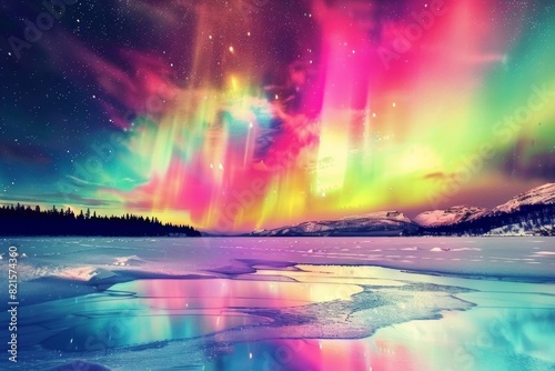 Spectacular Aurora Borealis Illuminating a Frosty Finnish Lake at Night, Reflecting Vibrant Colors on Ice