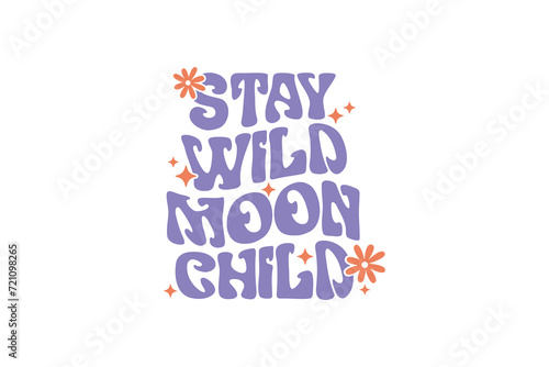 Stay Wild Moon Child, Retro Groovy Inspirational Quote SVG Typography T Shirt Design
