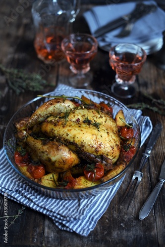 Tasty roasted turkey or chicken. Grilled chicken with vegetables.