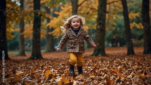 The exhilarating rush of wind as a child leaps into a pile of freshly fallen leaves, their laughter echoing through the autumn woods ai_generated