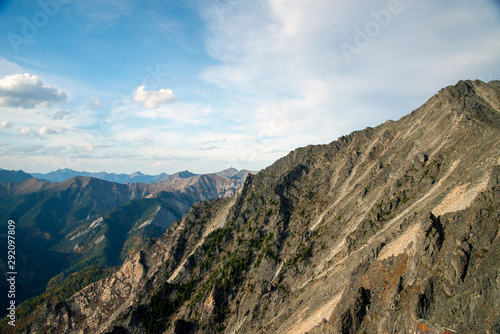 The mountain ranges of Satan and Hamar-Daban. Mountain peaks and valleys. Mountain landscape. The nature of Siberia.