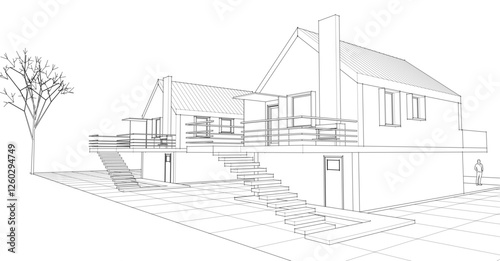 architecture, house, three-dimensional, building, apartment, bungalow, row house, residential, architectural, background, business, cad, concept, abstract, construction, contemporary, design, drawing, engineering, exterior, facades, floor, frame, graphic, home, housing, idea, illustration, industry, line, modern, module, outline, pavilion, perspective, project, rendering, repeat, vignetting, space, structure, style, technology, terrace, villa, white