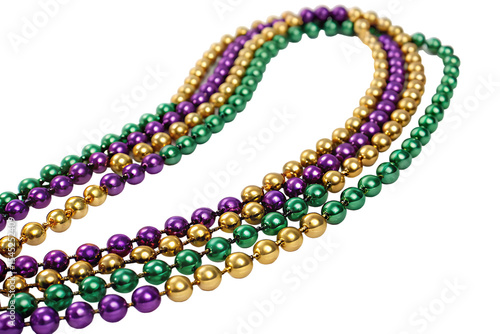 traditional-mardis-gras-beads-necklace-in-purple isolated on white background png, ai generated