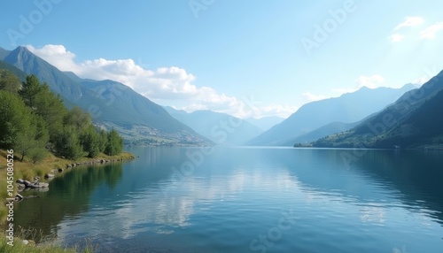 calm, blue, lake, vacation, cloud, travel, nature, green, water, peaceful, scenic, landscape, sky, picturesque, mountain, serene, tranquil