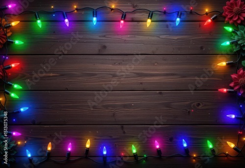 Vibrant Christmas A rich dark wood provides a stunning contrast for a cheerful string of multi colored Christmas lights.