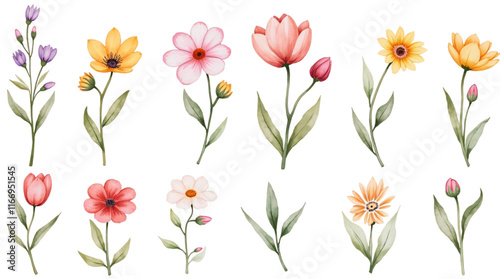Watercolor Flowers Isolated on a Transparent Background.