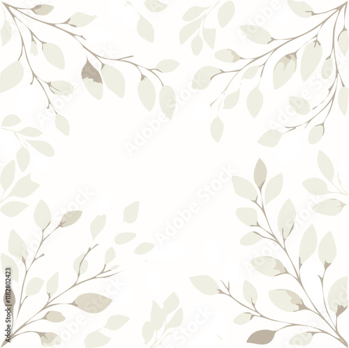 Watercolor leaves frame design vector wallpaper. Line leaf background, textured jungle print.