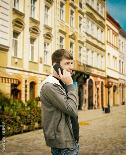 man, phone, young, street, walking, mobile, smart, man, male, person, portrait, city, smiling, lifestyle, people, mobile phone, casual attire, holding, smartphone, hipster, technology, business, travel, text, phone, fashion, photogenic, beard, outdoors, urban, looking, 1, down, standing, adult, happy, caucasian, attractive, bag, cool, calling, communication, jacket, texting, professional, stylish, message, hair, white