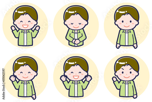 man, children, private, waist up, front, smile, joyful, fun, happy, positive, happy, enjoyment, positive, light, lively, bow, courteous, greeting, gratitude, regard, payback, apology, expression, feeling, icon, pose, sweet, people, set, infographic, illustration, vector, material, symbol