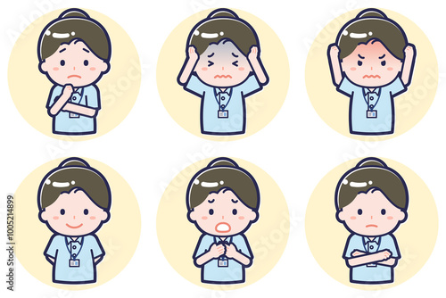woman, adult, occupation, nurse, welfare, helper, care, staff, nursing home, waist up, front, smile, joyful, fun, happy, positive, happy, enjoyment, positive, light, lively, sad, stern, depression, spicey, repentance, embarrassment, impatience, apprehension, anger, anger, moody, prayer, wish, expression, feeling, icon, pose, sweet, people