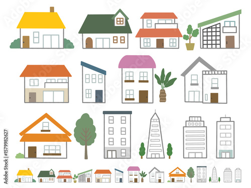 house, house, building, home, residence, property, illustration, residential area, set, town, house, architecture, sweet, residential area, landscape, icon, town, material, line, cut