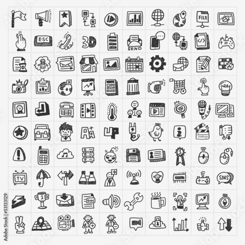 100 doodle web icons set