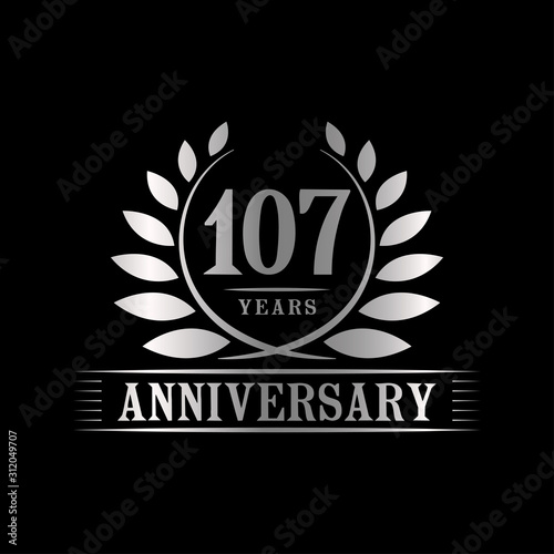 107, grey, silver, metal, anniversary, banner, badge, birthday, business, celebrate, celebration, ceremony, company, decoration, design, element, event, happy, invitation, jubilee, laurel, logotype, modern, retro, sample, graduation, winner, signs, success, template, vector, vintage, web, wedding, chaplet, party, seal, print, congratulation