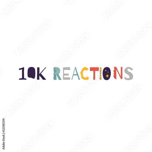 10k reactions vector art illustration celebration sign label with fantastic font. Vector illustration.