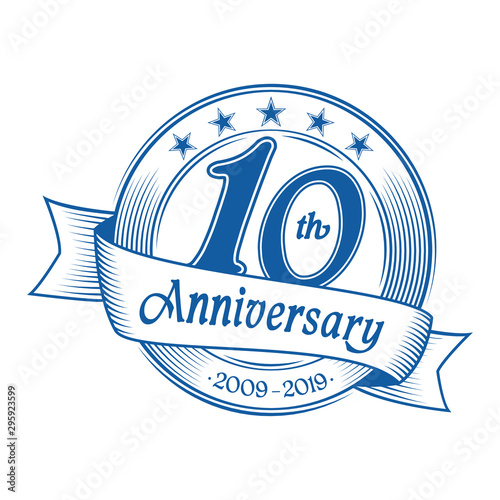 10, ten, tenth, blue, decoration, ceremony, stamp, business, anniversary, th, signs, vector, success, star, symbol, jubilee, celebration, event, element, label, invitation, happy, emblem, template, illustration, number, congratulation, certificate, retro, age, design, badge, classic, birthday, seal, wedding, celebrate, vintage, party, logotype, year