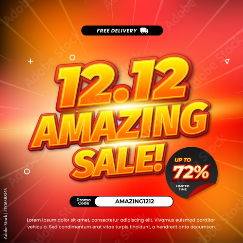 12.12 Amazing Sale discount deals with vibrant black red yellow abstract gradient Editable text effect Promotion banner