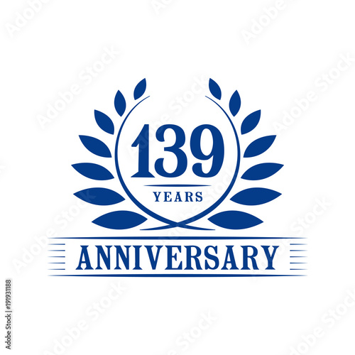 decoration, chaplet, ceremony, business, anniversary, signs, vector, success, template, jubilee, celebration, event, element, modern, retro, web, design, badge, company, birthday, banner, invitation, wedding, celebrate, vintage, logotype, laurel, happy, laurel wreath, seal, white, blue, 139, th