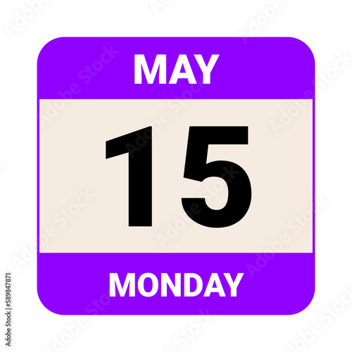 15 May, Monday. Date template. Useful design for calendar or event promotion. Vector illustration EPS 10 File.