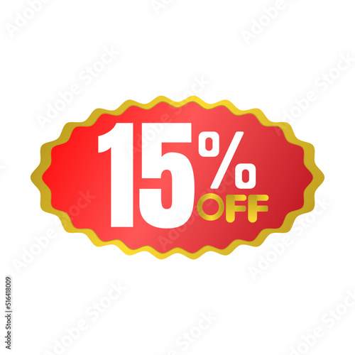 15% percent off(offer), golden award winning super discount sticker, vector illustration, sale red design, Fifteen