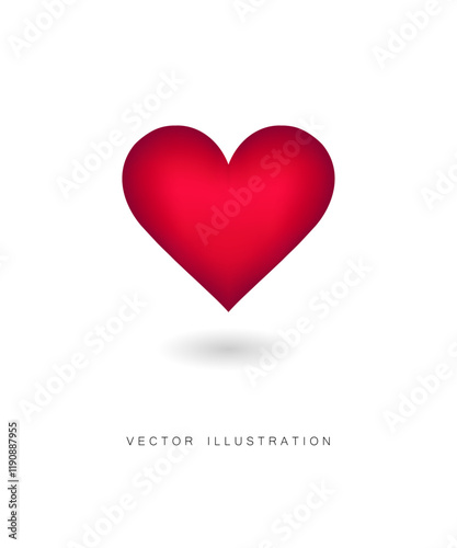1534_Red heart with gradients, isolated on white background, vector illustration