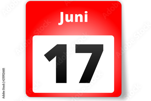 17 Juni Datum Kalender auf weißem Hintergrund